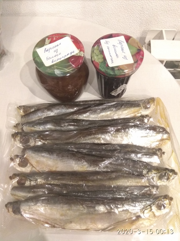 Отдельное спасибо за рыбу и варенье из вишни и винограда. Пока ещё не пробовали, но выглядит очень аппетитно)