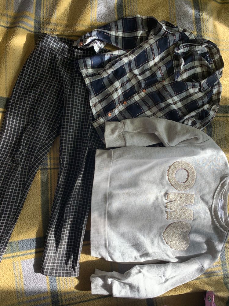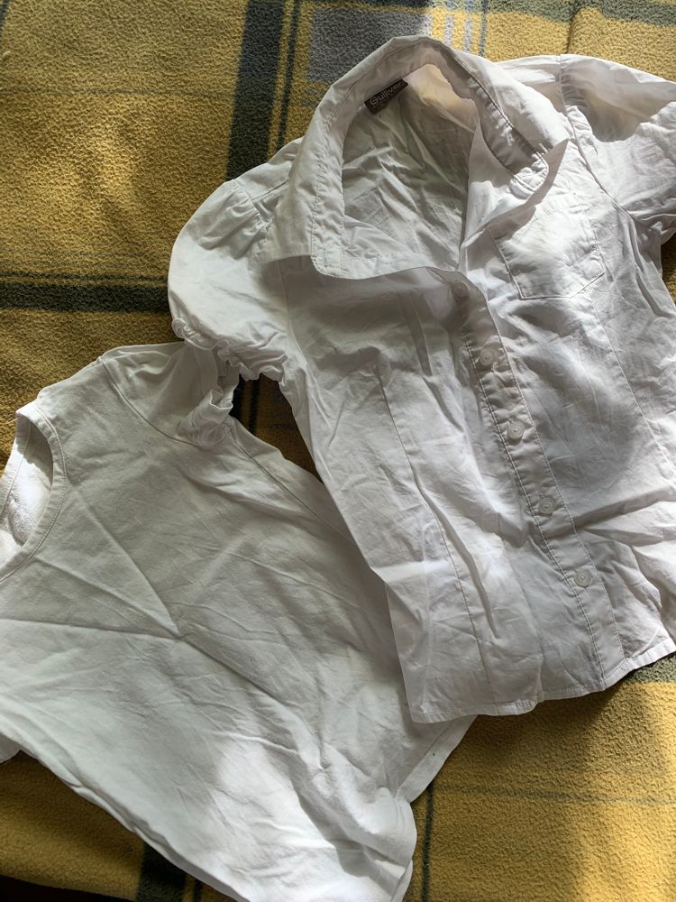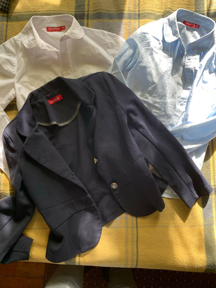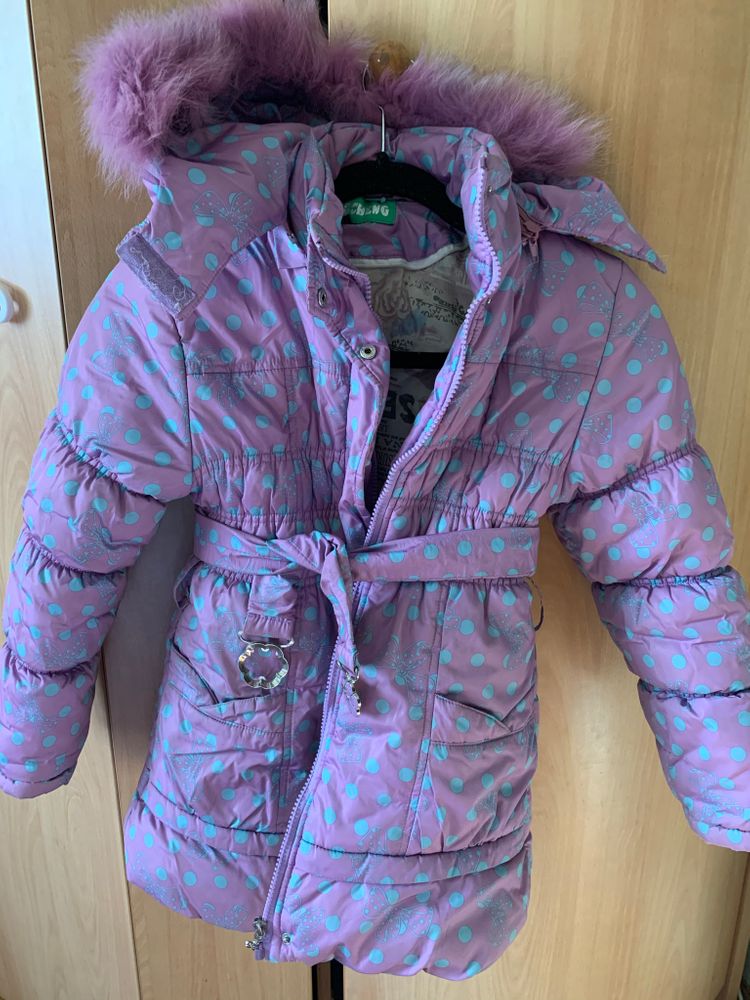 Всё школьное для первоклашек, также джинсы, рубашки, свитер 122-128.Сиреневый пуховик с поясом 128-134, очень тёплый.Розовая куртка Лэсси 122-128, есть потёртости, катались этот сезон в ней на горке, но уже мала.Думаю для улицы, особенно сельской местности будет в самый раз.Штаны зимние Акула, затертости минимальные.Качество отличное,122-128.Куртка зимняя на мальчика Фила 134, мы носили в 10-11 лет.Не прям тёплая, но мы не мёрзли совсем.Единственное - ремонт молнии.Также для девочки добавлю колготки, маечки, кофточки.