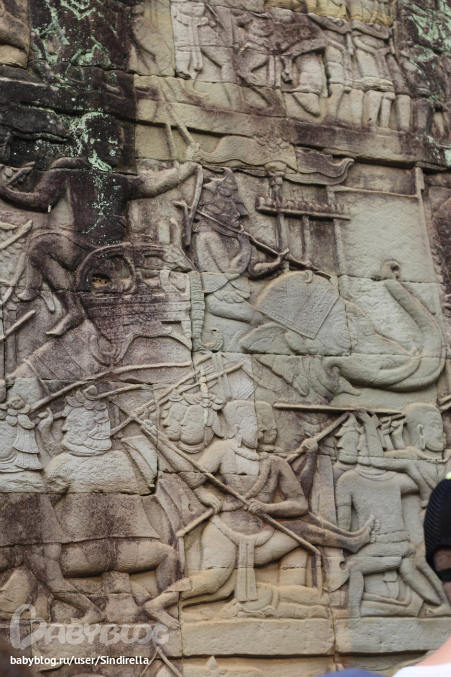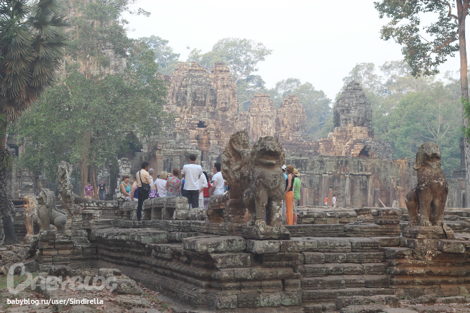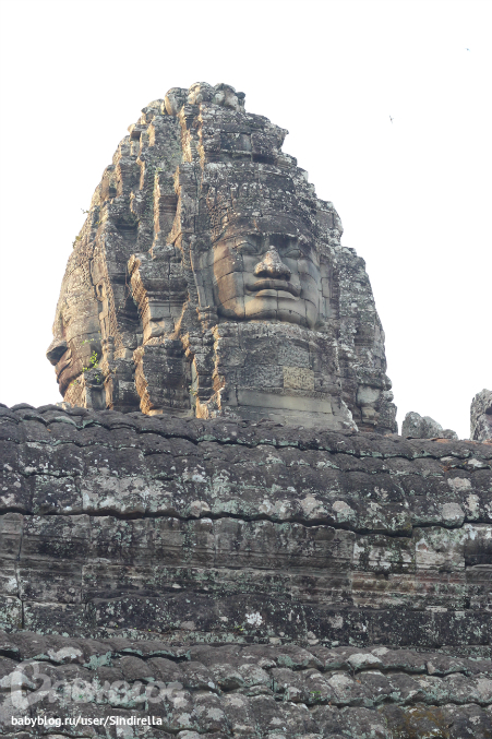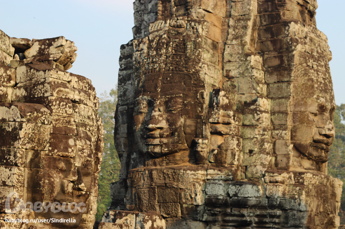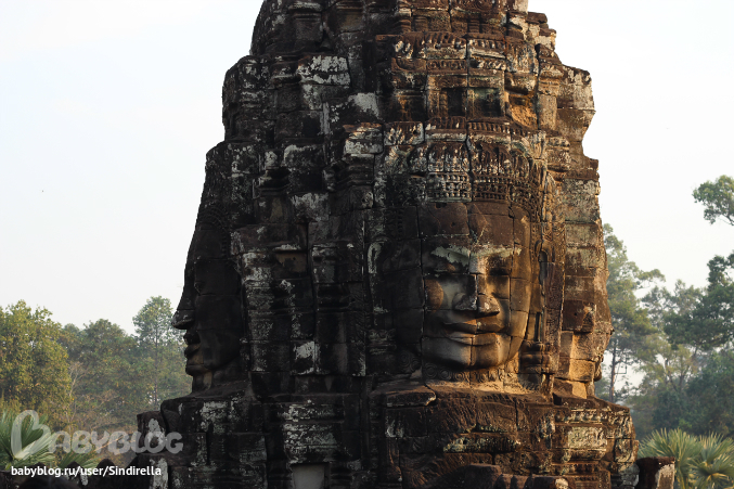 Первый осмотренный нами храм - храм Байон. Он включает в себя пятьдесят четыре огромные башни, каждую из которых украшают четыре обличья Будды. Говорят, что в полнолуние все лица, которые в обычное время улыбаются, начинают изображать разные эмоции - каждая свою эмоцию... Не знаю, на сколько это правда, но говорят зрелище не для слабонервных.