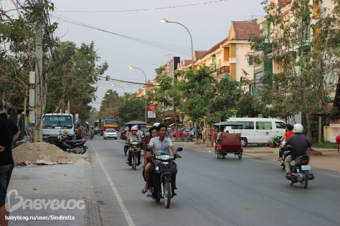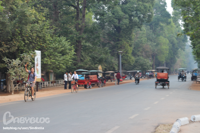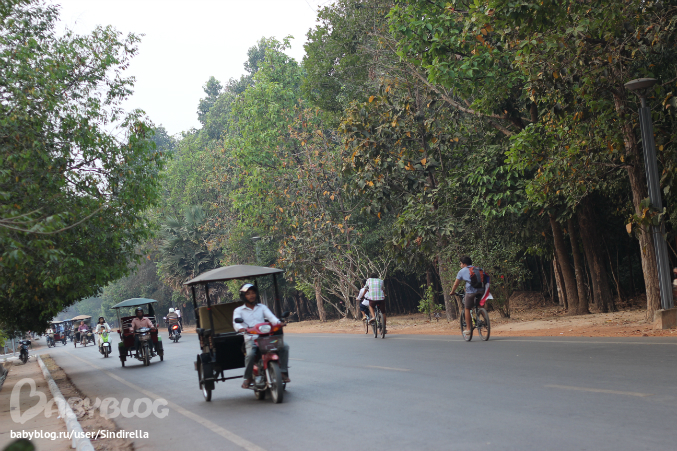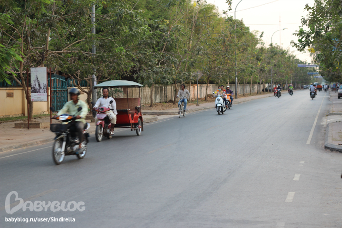 Вот такое движение на улицах местного города Сиемриапа, в основном это велосипеды, чуть меньше мотороллеров и совсем мало машин: