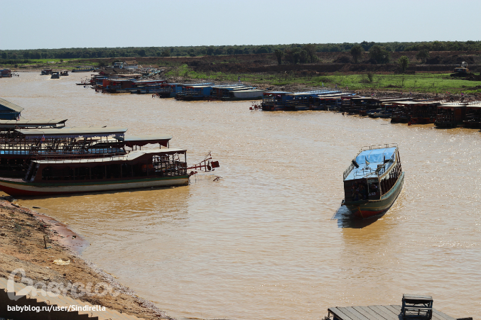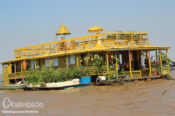 Озеро Тонлесап. Территория озера достигает 16 000 км², а глубина — 9 метров в сезон дождей.На озере живут люди, причём непосредственно на озере. Люди эти - нелегалы из Вьетнама. Здесь есть единственное каменное здание, оно стоит на высоких сваях — это буддийский храм. Все же остальные строения — плавучие и мигрируют в течение года по озеру. Кроме лодок и плавучих домов местных жителей, здесь есть несколько кафе для туристов, есть даже католическая церковь. Местные жители, по сути, всю свою жизнь проводят на воде.