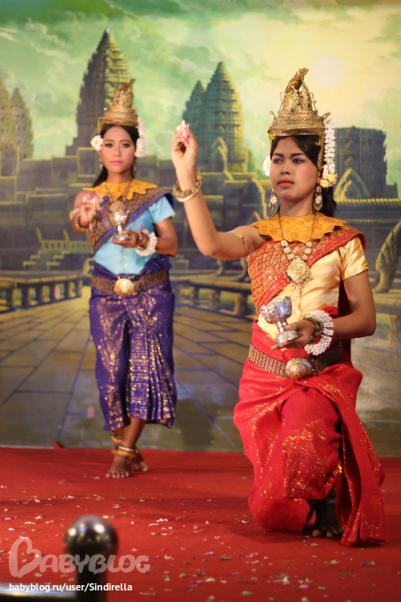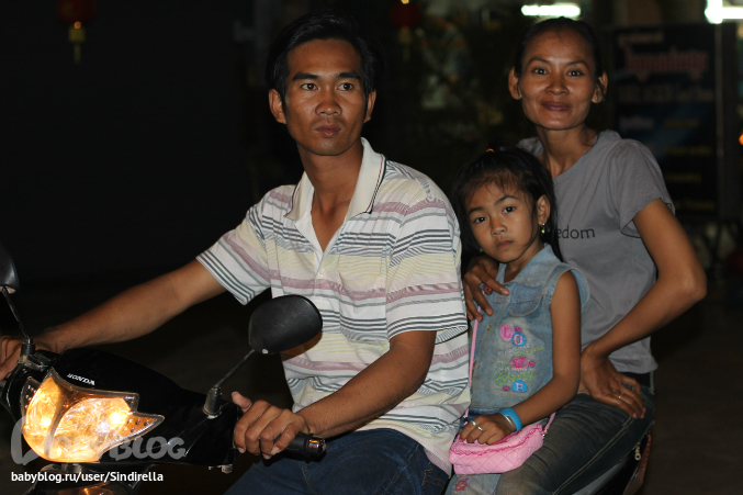 На первый вгляд нам, европейцам, может показаться, что живут камбоджийцы за чертой бедности, однако это не совсем так. Камбоджийцы-буддисты, а потому у них совсем иное отношение к жизни, нежели чем у нас. Одеваются они для того, чтобы просто не быть голым, а не для того, чтобы хорошо выглядеть, а едят лишь для того, чтобы восполнить организм необходимой энергией, а не чтобы получить удовольствие от еды. Ну, это если совсем утрировать..... Поэтому и быт у них соответствующий и внешний вид тоже. Однако, по словам русских, живущих в Камбодже, в их лачугах, например, вся техника последних моделей и деньги они тратят не на покупку машин, квартир и золота-бриллиантов, а на то, чтобы, например, посадить еще больше риса..... В Камбодже нет государственных пенсий, престарелых родителей содержат их дети, а потому рожают там по 10-15 детей. Детских садов там нет, а потому в школу идут лет с 3-4..... Занятия там в начальных классах похожи на наши садовские занятия. Многие дети сбегают из школы и бегут туда, где есть туристы - продают сувениры, магниты, фотографируются с туристами и всячески стремяться заработать тот самый один доллар. Местнёая кухня мне понравилась, во всяким случае там, где я ела она была адаптирована к европейским вкусам, хотя местные русские говорят, что камбоджийская кухня в чистом виде ужасна. Писать можно очень и очень много, но, как говорится, лучше один раз увидеть, чем сто раз услышать, так что смотрите и читайте небольшие комментарии.