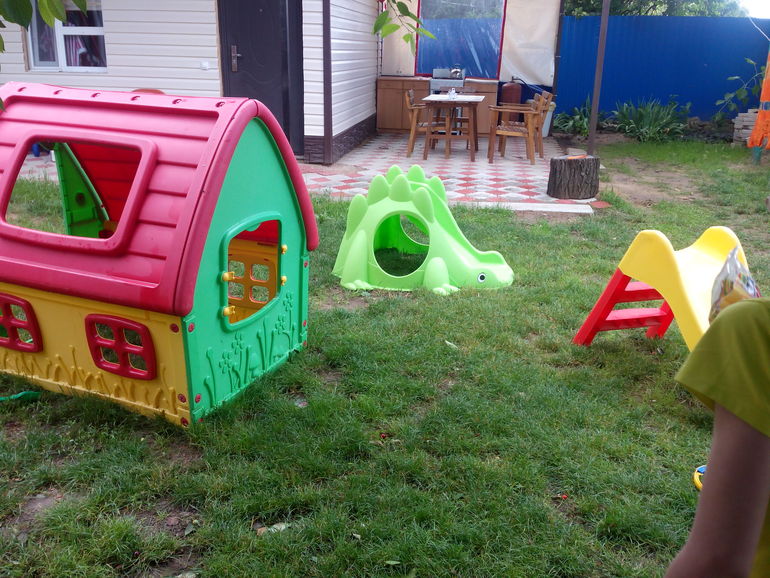 Юля, комары были, но очень мало.Вечерами часа на 2 появлялись и пропадали) а вот в Голубицкой их много. Мы купались на диком пляже, т.е. на пляже нет аттракционов и переодевалок, на Центральном пляже есть все, это совсем рядышком, мы видели с этого пляжа, но не пошли туда - там народу много. На счёт спуска, на фото( предпоследнем видно его), идти по нему удобно. Лесенки может на Центральный пляж, не знаю)Вообще минусов для нас не было. Даже педиатр есть там( хотя в интернете пишут что нет).