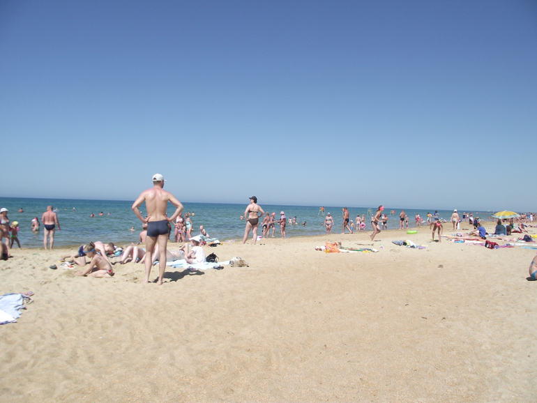 Пляж (кстати, в "час пик" в июле), рядом купаются дети из лагеря, но они очень кучно, на выделенной территории.