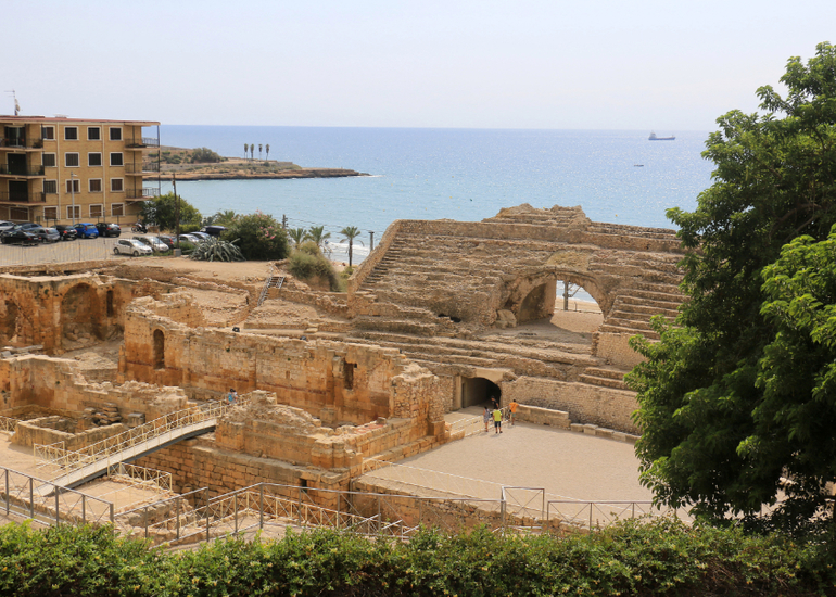 Чуть пройдя в сторону, попадаешь к еще одной достопримечательности - сохранившемуся римскому амфитеатру, который был построен в начале II века н.э.. Здесь вначале проходили бои между гладиаторами и бои гладиаторов с животными, а впоследствии устраивали морские бои, заполняя сцену театра морской водой и спуская на нее корабли.
