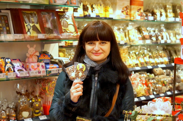 Заходили в лавочки, разглядывали сувениры. В лавочке сладостей накупили детям кучу шоколадных фигурок и наборов конфет. Ммм, вкусно!