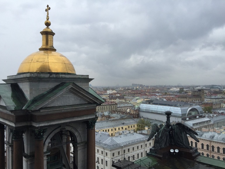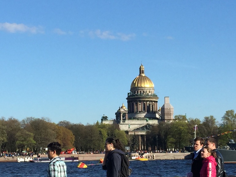 Во второй день шел дождь, поэтому все планы пришлось перестраивать с учетом плохой погоды. С утра был Гранд-макет, сразу после него - Исаакиевский собор. В промежутке мы пытались попасть на подводную лодку, в музей, но оказалось, что запускают туда по 10 человек и ждать надо 10-15 минут. Шел сильный дождь, на набережной лейтенанта Шмидта было очень ветрено, и мы решили пожертвовать лодкой в пользу Исаакиевского с колоннадой.