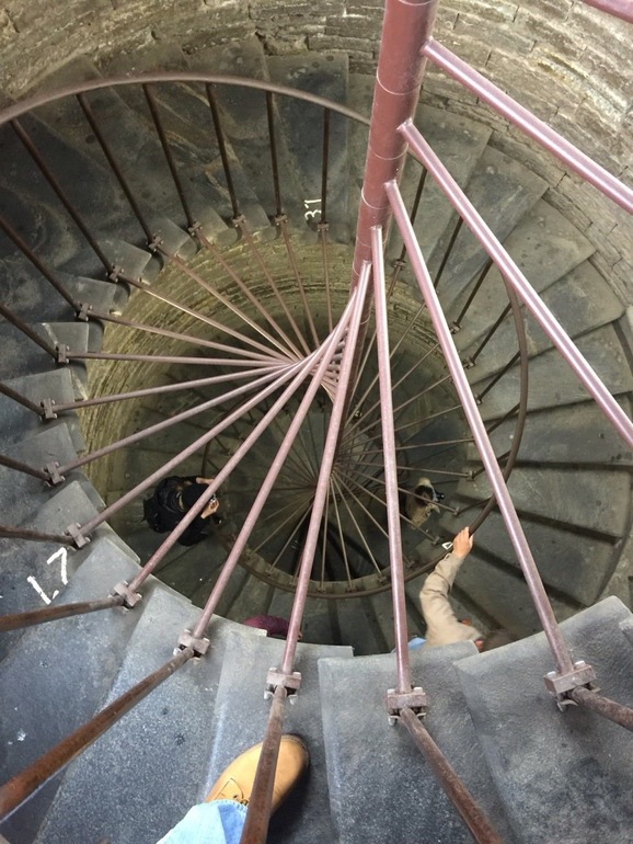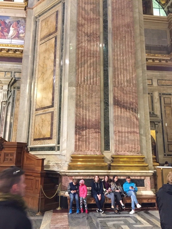 В самом соборе мы с мужем попали на интересную экскурсию. Дети послушали вместе с нами минут 15, а остальное время сидели на лавочке и смотрели по сторонам. Потом мы рискнули подняться на колоннаду все вместе. 280 ступенек осилили достаточно легко, но наверху некоторым стало страшно, поэтому я, Маша и Илья, наспех сфотографировавшись, заторопились к выходу, а муж остался наверху.