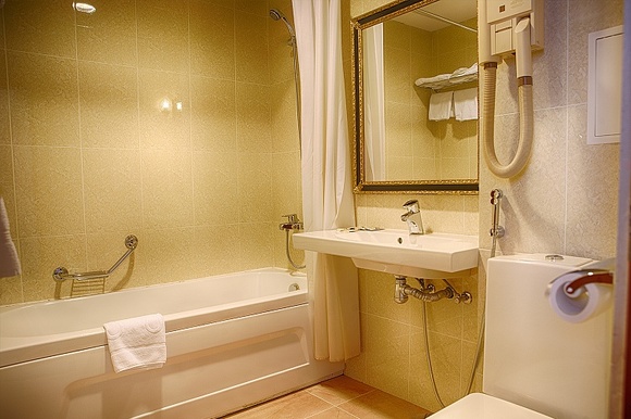 Вот такие две ванные комнаты. Фен, гигиенический душ, шампуни/мыло, полотенца в достаточном количестве.