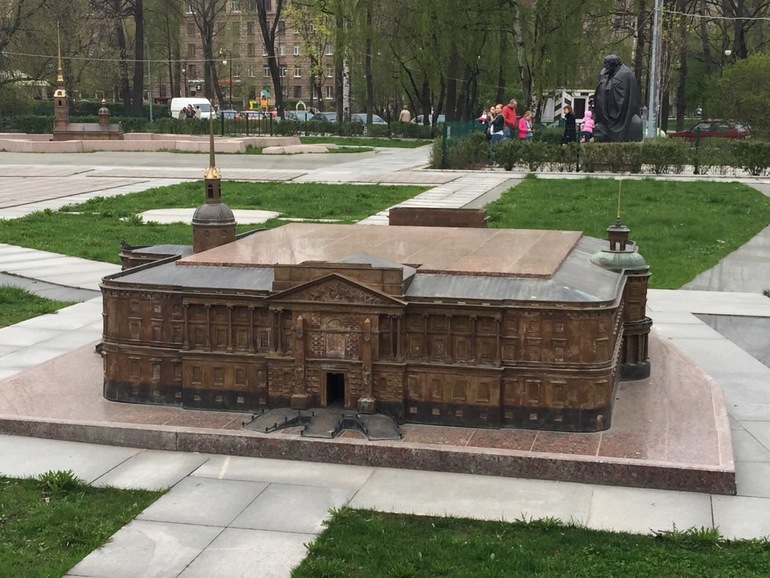 В Александровском парке я хотела посмотреть выставку Мини-город, чтобы сначала показать все достопримечательности Питера детям в миниатюре, а потом уже в полный рост. Но оказалось, что экспозиция закрыта до 30 мая по каким-то там причинам, и смотреть нам пришлось из-за ограждения. Жаль, что не получилось походить по дорожкам, но хоть так)