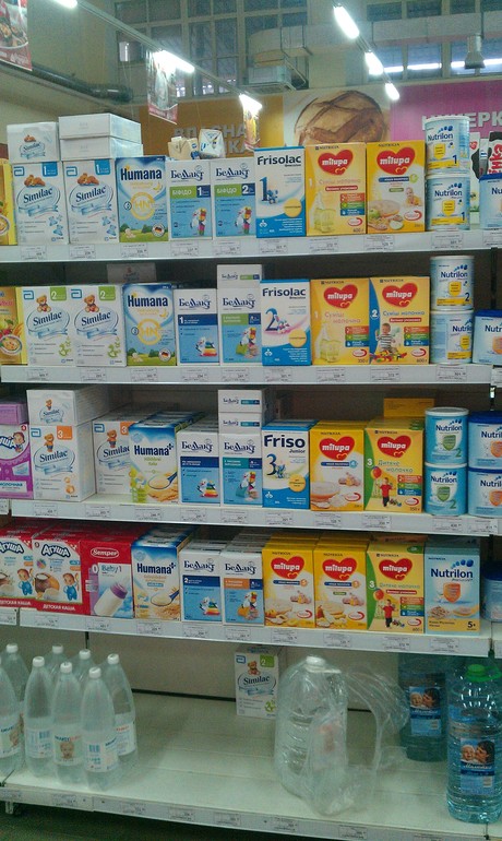 Гипермаркет «Фуршет» ул. Дмитрия Ульянова ½. Большой магазин. Здесь мы видели крем солнцезащитный с индексом 60 за 315 руб. Здесь мы купили пельмени без добавления растительного белка, везде продаются только с соей. Мы искали пельмени, чтоб было что-то в холодильнике приготовить «на быструю руку»)) У них пекут вкусные булочки, правда начинки в них мало)) Ещё купили овсянку, в ПУДе ее почему-то нет. Вот еще сфотографировала отдел детского питания, фоткала быстро и на телефон, поэтому за качество сорри…