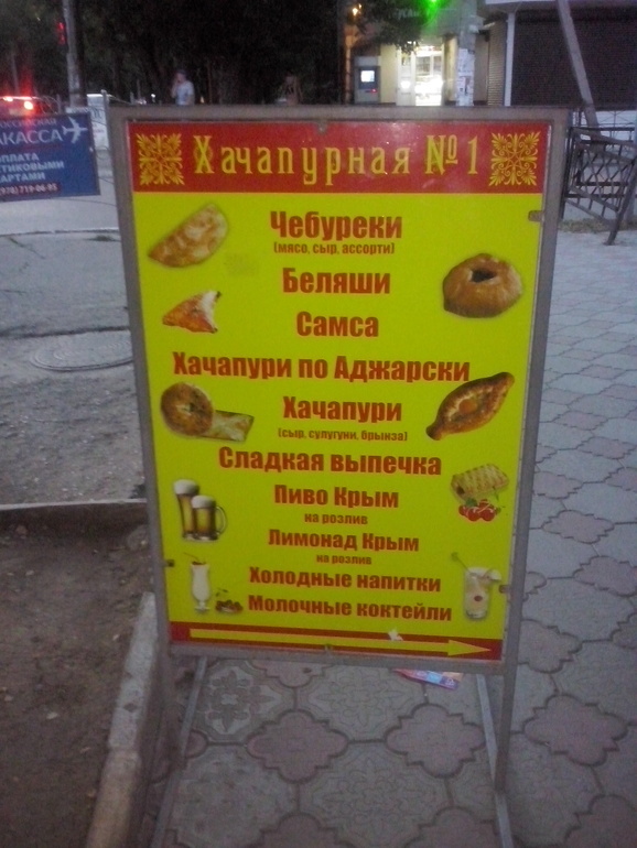 Хачапурная №1- находится на углу ул. Демышева и ул. Фрунзе. Очень вкусные чебуреки, лепешки, хачапури, обалденные слойки с вишней, с грушей, с шоколадом ммммммммммм. Готовят прям при вас, все свежайшее. Можно сделать заказ по телефону +7-978-094-23-22, а потом подойти и забрать в оговоренное время.