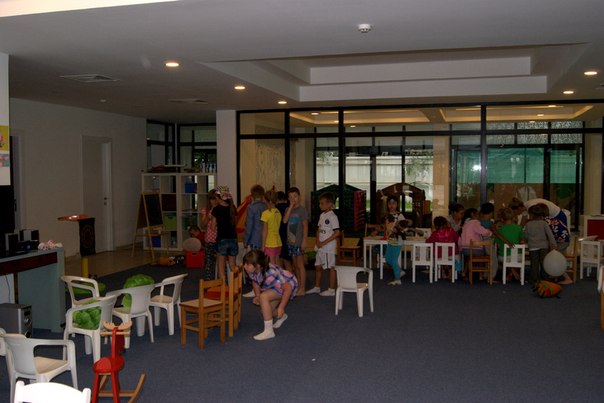Мини клуб для деток конечно же тоже был. Девочка Марина деткам нравилась, но интересно было малыш, до 4х лет. Старшие бегали по территории и играли на мягких подушках)