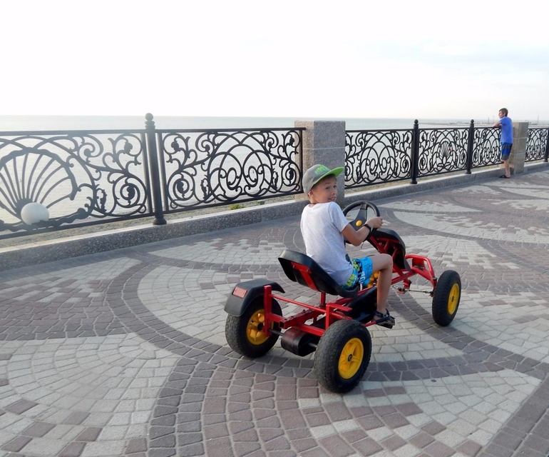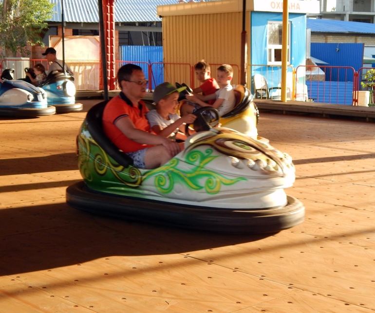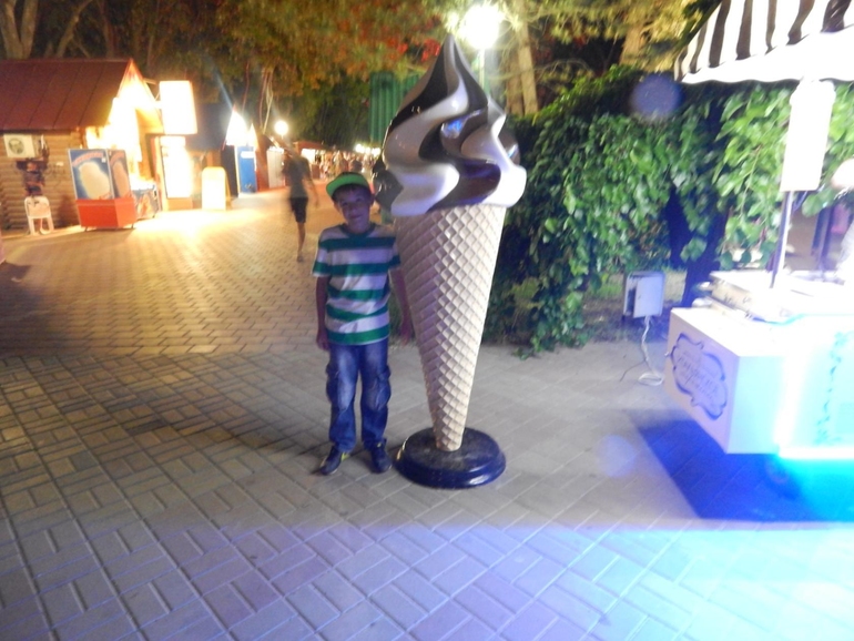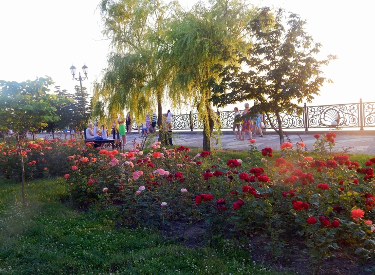 В 20 минутах ходьбы по красивому благоустроенному парку - парк Поддубного. Вот там самое большое количество аттракционов, советского образца и современных (раньше в Ейске был завод аттракционов). Много кафе на разный вкус на свежем воздухе, много зелени и цветов.