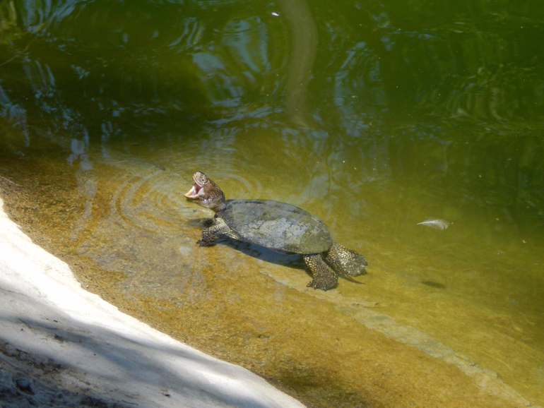 На центральной площади стоит храм. На территории типа зоопарка. В клетках много всяких птиц, от снегирей до павлинов. Загон с козликами. Прудик с мостиком, там плавают гуси, утки, лебеди, и много-много черепашек. Для малышей восторг.
