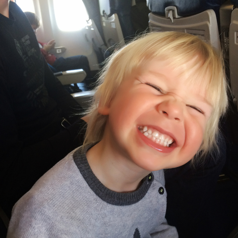 Летим в Тбилиси, счастье зашкаливает))) В этом фото- весь Ромка, счастье у него всегда прёт из всех дыр)))