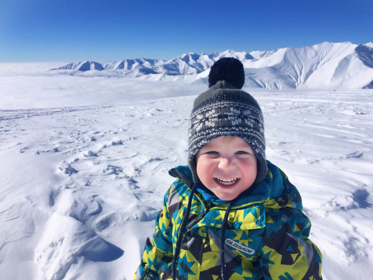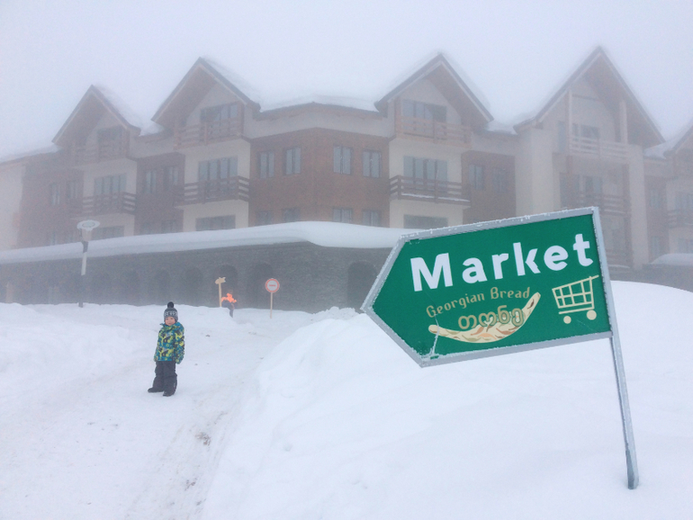 Добрались без приключений, по дороге затарились в супермаркете продуктами на неделю (в Гудаури нет больших магазинов и с продуктами трудно). Следующий день нас встретил синим небом и ярким солнцем и мы готовы были КАТАТЬСЯ). Дане взяли инструктора на час (50 лари), они поехали сразу на синюю трассу, а Ромку я сама катала на учебной трассе. Солнечное настроение, ослепительный белый снег, горы создают такое позитивное настроение, что если даже ничего не делать- уже хорошо) А в первый день мальчишки мои укатались так, что не стояли на ногах!