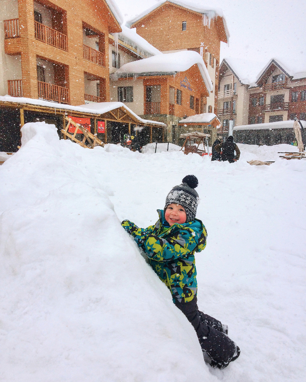 5-6 часов в день на свежем воздухе! И столько снега, что хоть целиком зарывайся) детям радость. При этом тепло, температура воздуха -2-3С. Мордашки наши обгорели уже на третий день) Поэтому совет: в горы обязательно с собой крем от загара!