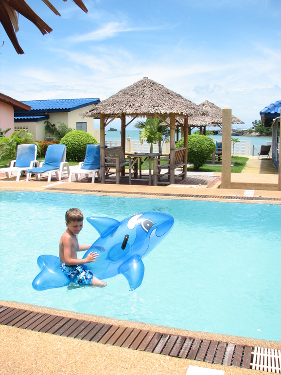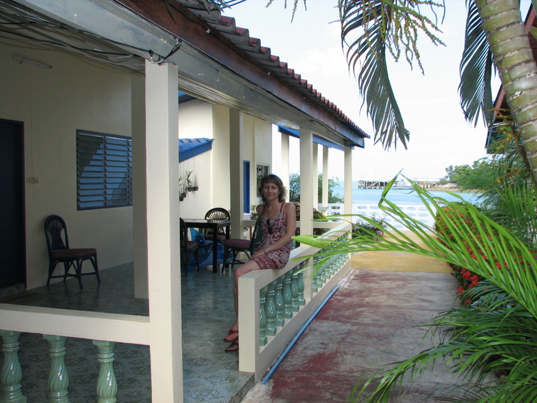 В аэропорту нас встретили и на такси отвезли к виллам. Отель представлял собой 10 вилл, довольно стареньких, но буквально в 5 метрах от воды. Хозяином их был англичанин Стив. Видимо он недавно их приобрёл и пытался делать бизнес. Кстати, он недавно прислал мне письмо, предлагал скидку 20-25 процентов. Но он сделал там хороший ремонт, и стоимость размещения теперь выросла в разы.