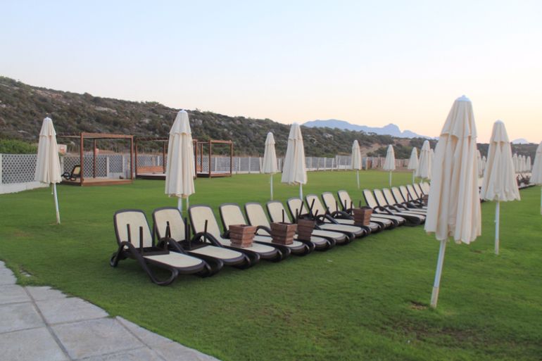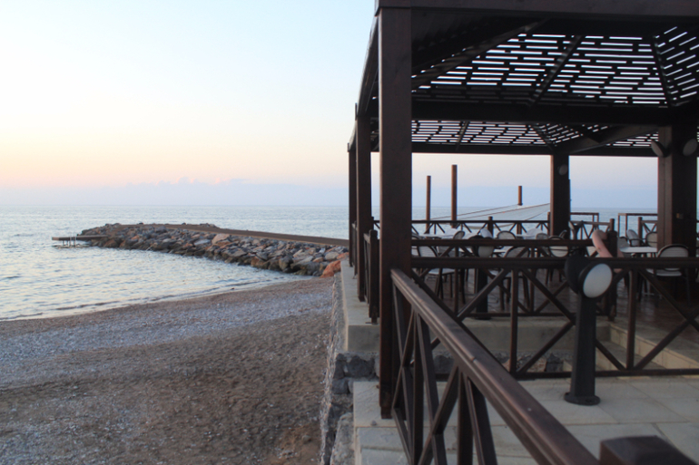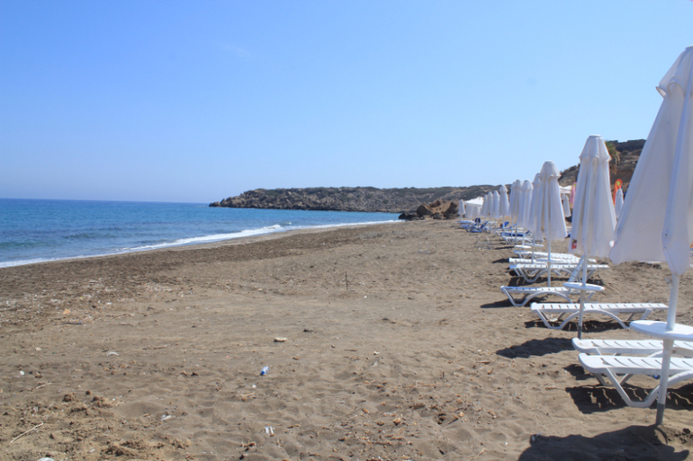 Ближайший пляж (выезжает из аппартов и налево в сторону Гирне) только начали оборудовать. Море бесконечно теплое и чистое, но вход.... сплошные скальные плиты...