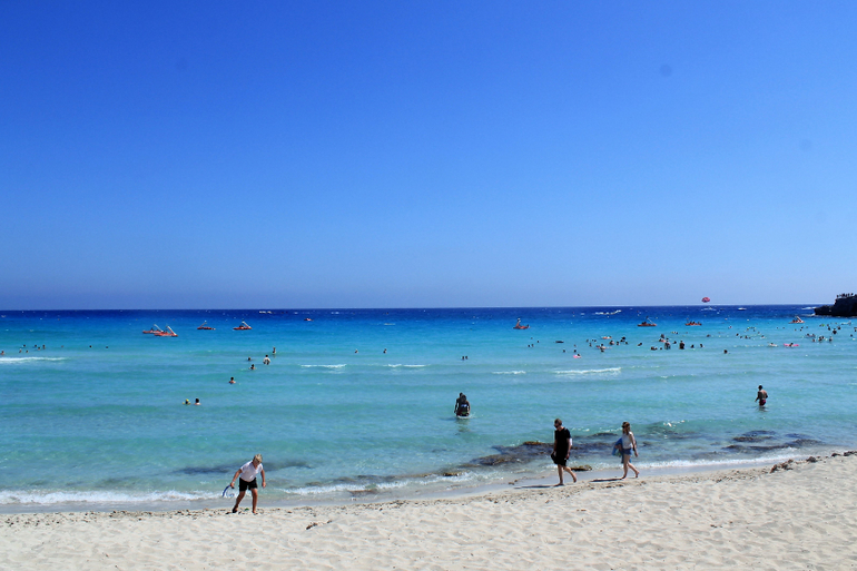 В этой части Кипра море и пляжи похожи на северный район Фамагусты - песочек, хороший вход и все прочее. Только все это сильно маленькое - бухточки, маленькие частные пляжики. Но куда бы вы ни свернули (по любому указателю на любой пляж) - везде есть парковки, везде все оборудовано, везде что-то свое интересненькое: то милый барчик, то площадка для игры в гольф прямо на пляже, то остров, куда легко доплыть даже детям, то храм прямо на берегу моря и т.п.