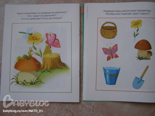 Выбрала одну про насекомых, с присутствием бабочки. Обсудили, что к бабочке друзья пришли, назвали, кто есть, кто и нашли сразу, что шарик то не звали)))