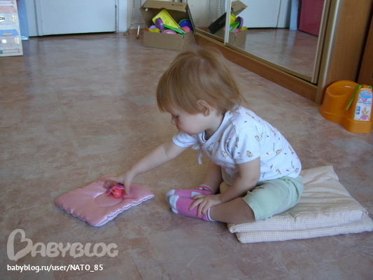 Наше занятие началось с того, что к нам в гости прилетела бабочка (заводная, игрушка, но все равно.) Лиза сразу принесла гостье подушечку и усадила ее вместе с нами, чтобы показать, как мы будем заниматься.