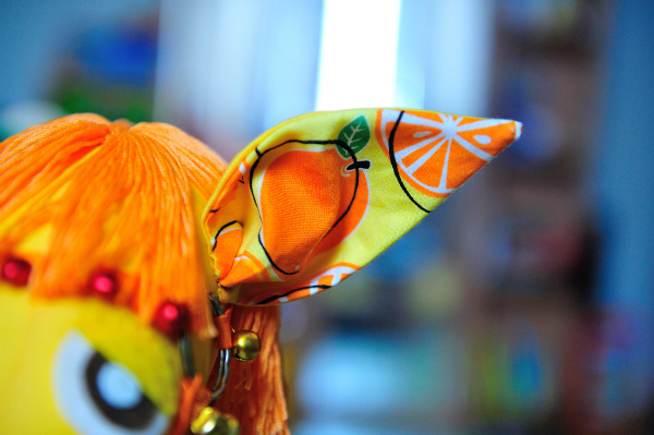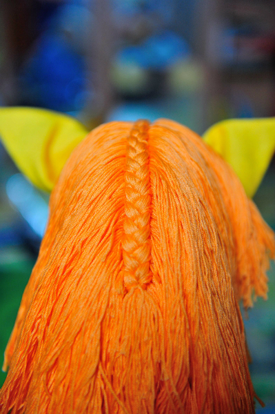 Спасибо! Берешь моток и наматываешь на ножки стула, разрезаешь на ровные части, пристрачиваешт к ткани и пришиваешт на голову)