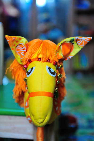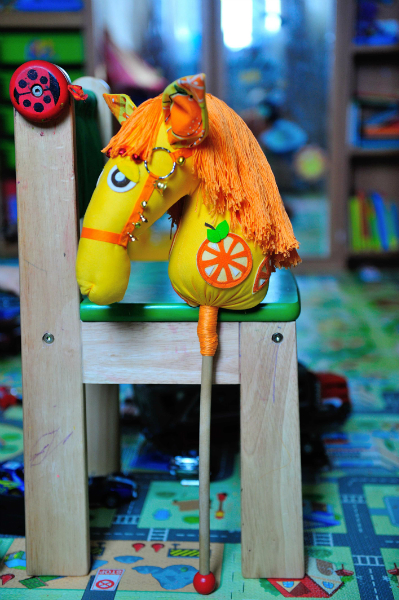 Деть скачет на нем с огромным удовольствием) лежала дома палка , вот теперьь пристроила ее для коняшки))