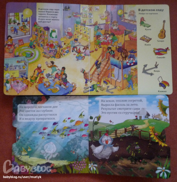 Качество отменное,после многочисленных юзаний задвижек-как новенькие. Книжки не просто для чтения,а с обучающим уклоном.Первая книга малыша познакомит с домашними животными,расскажет для чего люди держат их на ферме. Со второй книжечкой дочка играла в загадки-прятки,искала и знакомилась с лягушкой,кротом,пчелками и т.д.