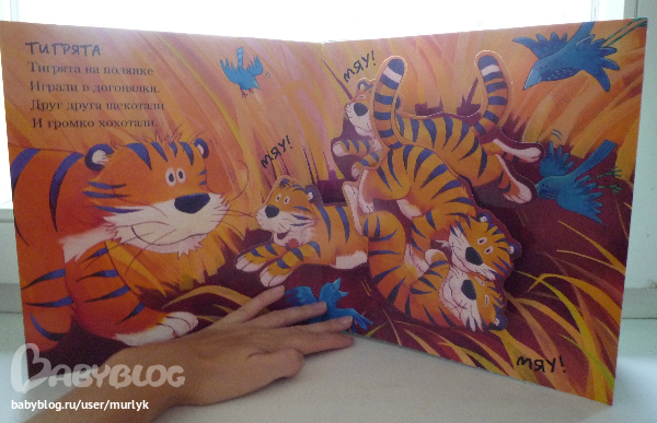 Книжки-игрушки серии " Поиграй со мной" с подвижными элементами,картинки двигаются при открытии книги.Пчелки летают,стрекозка трещит,муравьи весело шагают,львята кувыркаются,а зебра показывает язык и т.п. Книжка увеличенного формата,картинки веселые и интересные.Дочка провела за книжжжечками не мало приятных часов!