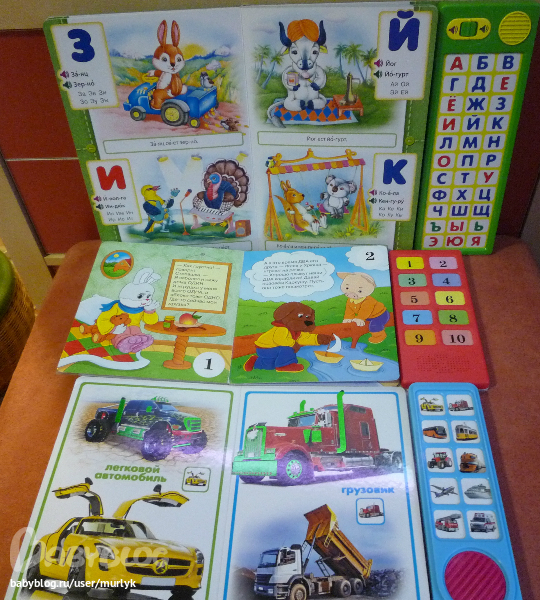 В тесной дружбе с этими звуковыми книжечками изучали цифры,звуки (я долго искала букварь именно чтобы произносилась ни буква,а звук)и угадывали какое транспортное средство издает какой звук.