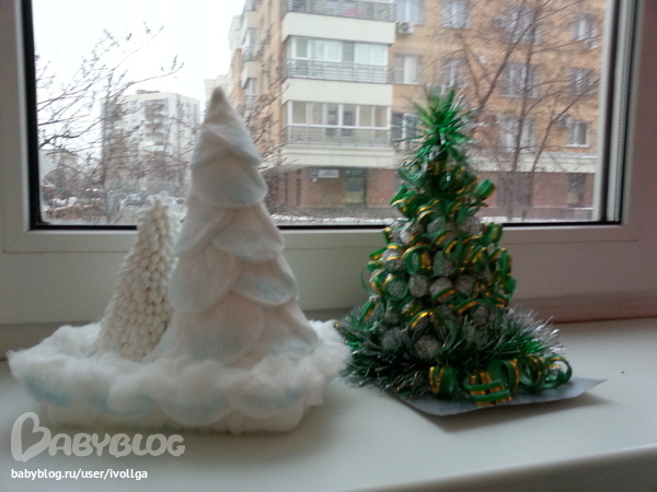 Вот такие у нас полчились елки - таких никто не принес - очень много было из инета из салфеток - красивые , и читала девчонки писали, чтов первый раз на салфеточную елку уходило у них по 5 часов.