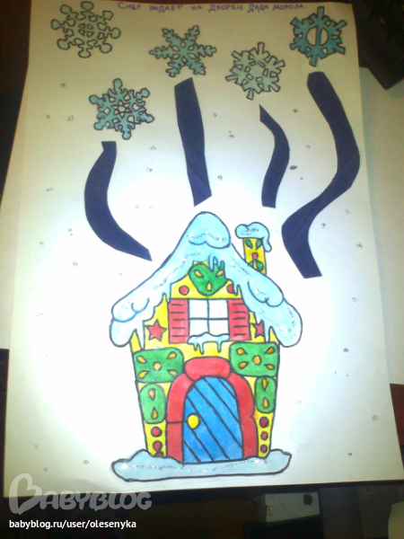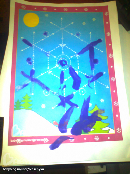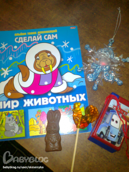встречала сына в домике сама хозяйка дня-подвеска в виде снежинки, светится красным и синим)))оценил, пытался выкрутить батарейку)) книжка с аппликациями(сделали моржа с обложки))