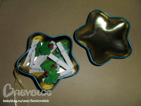 29 декабря - прищепки. Цепляли их на ёлку, на картон (делали цветочек). Хотела купить прищепки с новогодней символикой, но не нашла, поэтому так ))).