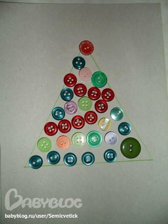 28 декабря - коробка с пуговичками. С пуговицами мы играем часто, еще одина вариант игры - выложить ёлочку (это моя, дочкину я не сфотогрфировала).