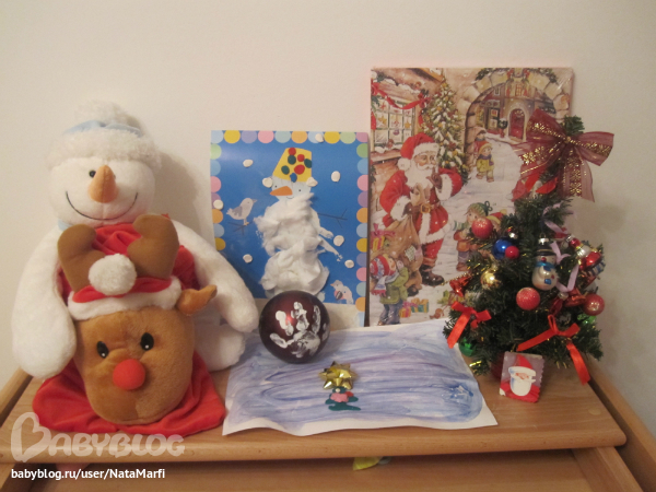 Еще у нас есть снеговик, который каждое утро Анечке приносит маленький подарок.