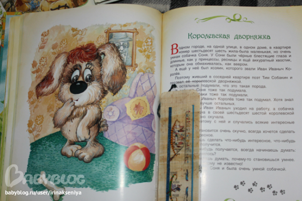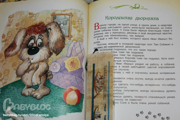Эту книжку Ксюша схватила в бибилитеке и ни в какую не собиралась мне отдавать. Когда мы пришли домой, она потребовала включить мультик Простоквашино-просмотрела и тогда мы принялись за чтение)