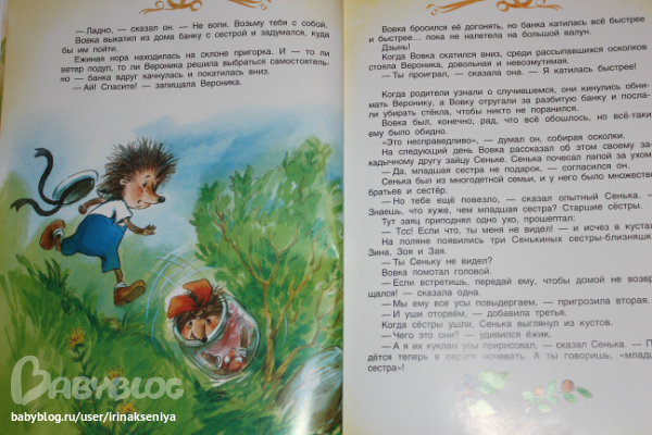 Эту книжку я купила скорее для себя, начитавшись положительных отзывов. И вот счастье, Ксюша сразу прониклась этой книжкой, и мы вместе взахлеб ее прочитали. Очень захватывающая интресная история про маленького ежика, который искал свою маму.