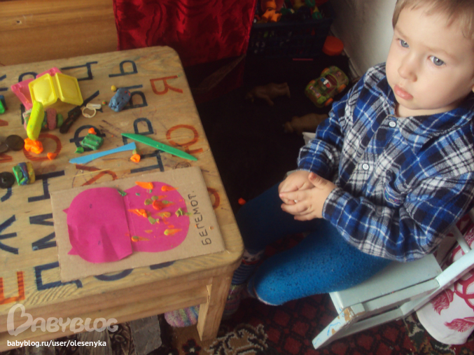 ротик открыли и кормили))) АЖ 10 минут!!!потом пожевали пластилин, побегали(я за Темкой, чтобы забрать, он от меня просто чтоб размяться) и решительно закрыли бегемоту рот.