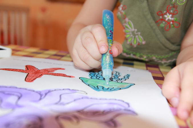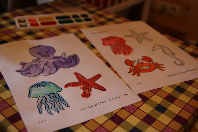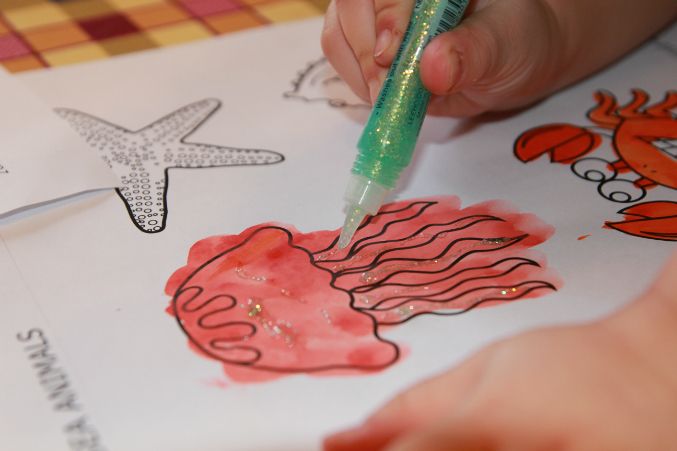 Далее, творчество. Акварель. + гель с блёстками у меня утащила и решила украсить своих морских жителей.
