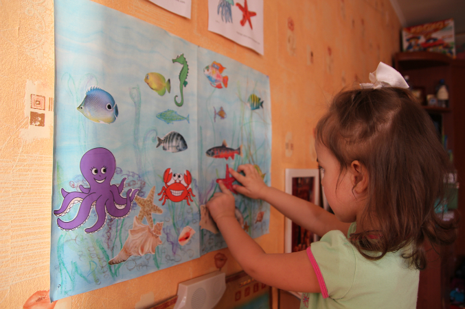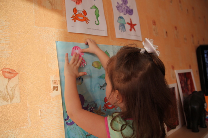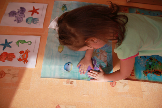 Появился у нас звуковой плакат. Искали там морских жителей, их там много оказалось.
