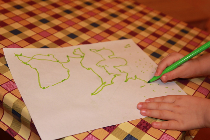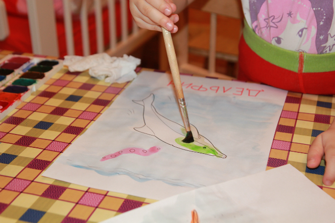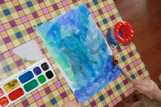 Тут сначала я расстроилась, что был закрашен осьминог, но зато обрадовалась тому, как Настя смешивала цвета - прям как художник))))