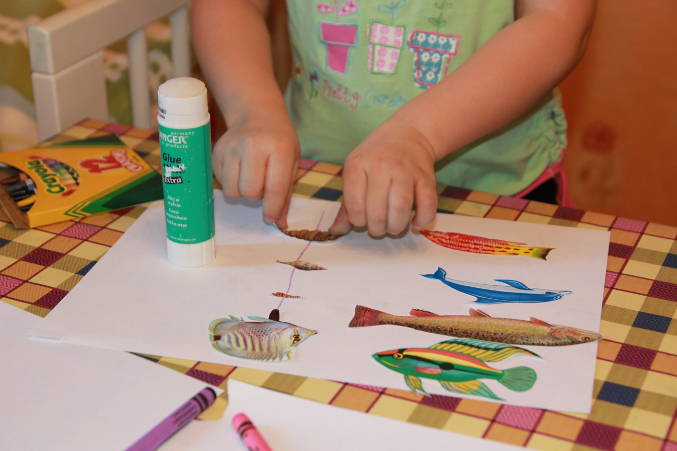 Объяснила, что нужно помочь рыбке попасть в аквариум, но все равно первый раз немного не туда рыбка "поплыла"