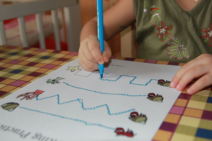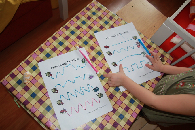 Прописи. 2 варианта подготовила. С Первым справилась легко, поэтому сразу же предложила второй вариант.