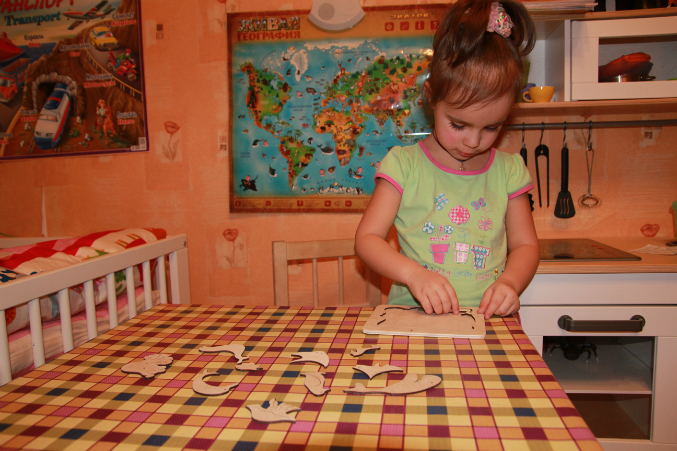 Далее необычный пазл из дерева, очень мне понравился!!!!!!!!!!!!!!!! НО! в первый раз его было сложно собрать, даже нам - родителям. Ну а позже, с 10-ого раза))) уже и Настя справлялась.