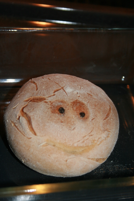 Вот такой вот у нас колобок получился. правда это уже в процессе выпечки, забыла его сырым сфоткать. а вечером разукрасим его.