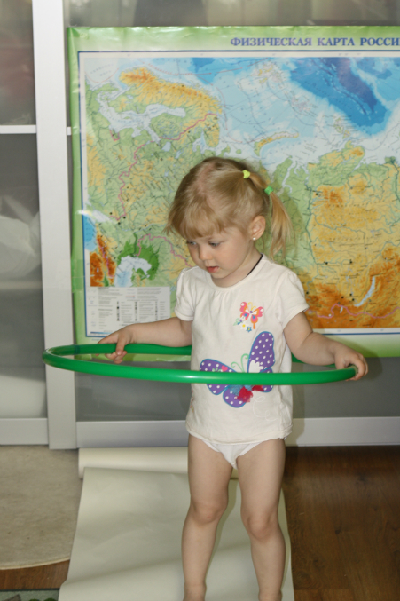 О, учила крутить обруч ))) Ну не получается, рано наверно еще. Она его крутанет, но при этом движения телом никакие не совршает. Обруч, сделав несколько кругов - падает ) Соня начинает сначала ))