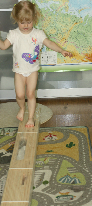 И, последнее - равновесие. Соня у нас большой любитель походить по бордюрам или еще чему-то узкому. Раньше у насд ля этого служила, да и служит, гладильная доска. Гладить не дает, скачет и просит, чтобы ей дали - держать равновесие, это она так называет )))) Сейчас же - купленный и несобранный стеллаж на балкон. Ходит отлично, не падает )