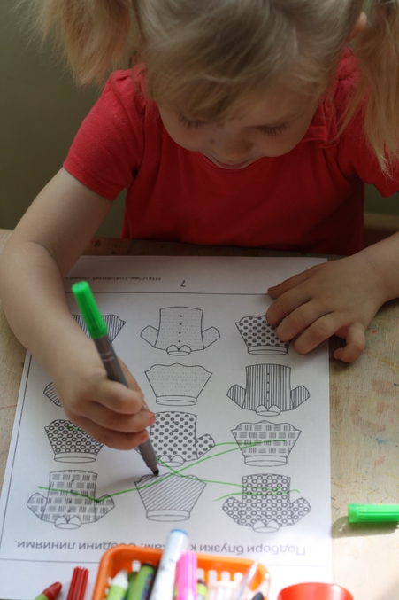 Подбери пару. Соня зависла над заданием ) Рассматривала-рассматривала и только потом начала соединять по рисунку .